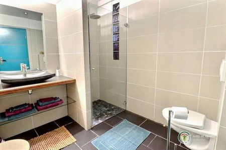 På den anden side er der 2 smukke forældresuiter på hver over 30 m², tilgængelige via nogle få trin (ikke egnet til personer med nedsat mobilitet). Hver suite har et soveværelse med en 160 cm seng (med myggenet), et område med en ekstra sovesofa, samt et badeværelse med toilet.