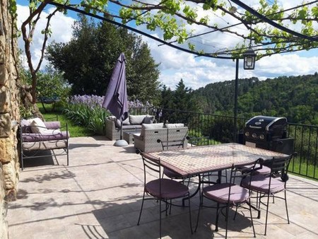 En smuk udendørs terrasse vil forskønne dit ophold: havemøbler og afslapningsområder, grill og især en fantastisk udsigt over Ardèche-landskabet!