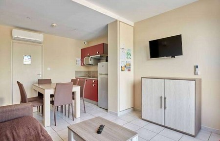 I Residence du Golf finder du flere forskellige boligtyper – fra studielejligheder til 2 personer til 3-værelses til 8 personer. Alle boliger er komfortabelt indrettet og har aircondition i sæsonen. De råder over et funktionelt tekøkken (glaskeramisk kogeplade, mikroovn, opvaskemaskine m.m.), badeværelse med badekar eller bruser samt toilet. Derudover har lejlighederne balkon, terrasse eller lille have. På stedet er der desuden adgang til WiFi og TV.