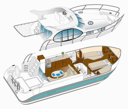 Facilliteter: Flybridge • Køleskab 220 liter • Fryser • Opvaskemaskine • Aircondition • Bovpropel