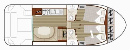 Nicols Quattro B + (Nicols) er fra kategorien Estivale, som er luksus-serien hos Nicols. Bådene er med det bedste udstyr og med megen komfort. Solterrassen bagerst i båden er i samme niveau som loungen, og den har solsejl/solmarkise, bord med stole, udvendig bruser og badestige. Der er ligeledes en fin terrasse i stævnen. Alle modeller har DVD-afspiller, elektriske toiletter, udendørs bruser og landstrøm. Båden har airkondition med landstrøm, dvs kun muligt når man ligger i havn/base.